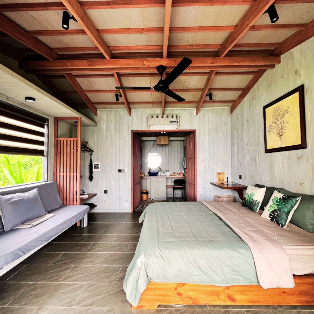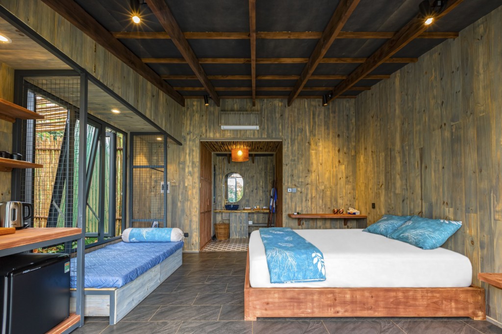 Khu nghỉ dưỡng lấy cảm hứng từ thiên nhiên và con người nơi đây vì vậy những thiết kế nghỉ dưỡng tại nơi đây cũng sử dụng các loại vật liệu tự nhiên như gỗ, tre, nứa, cọ,… giúp cho không gian nghỉ dưỡng hài hòa với thiên nhiên xanh mát.