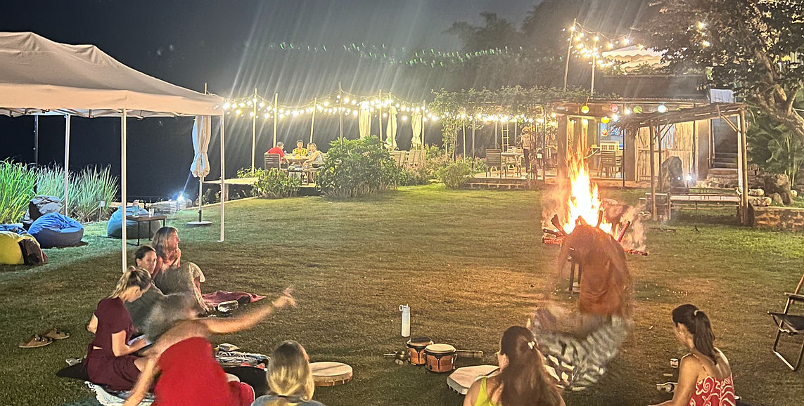 Ánh lửa trại bập bùng nhảy múa, xua tan màn đêm tĩnh lặng bên bờ hồ. Tiếng củi nổ lách tách hòa cùng những câu chuyện rôm rả, tiếng cười ấm áp lan tỏa trong không gian. Mọi người ngồi sát bên nhau, chia sẻ hơi ấm và những khoảnh khắc thân mật. Hương thơm thoang thoảng của đồ nướng quyện vào làn gió hồ se lạnh, tạo nên một buổi tối quây quần, ấm cúng khó quên. Ánh mắt mỗi người đều ánh lên niềm vui và sự gắn kết, tận hưởng trọn vẹn khoảnh khắc bình dị bên những người thân yêu.