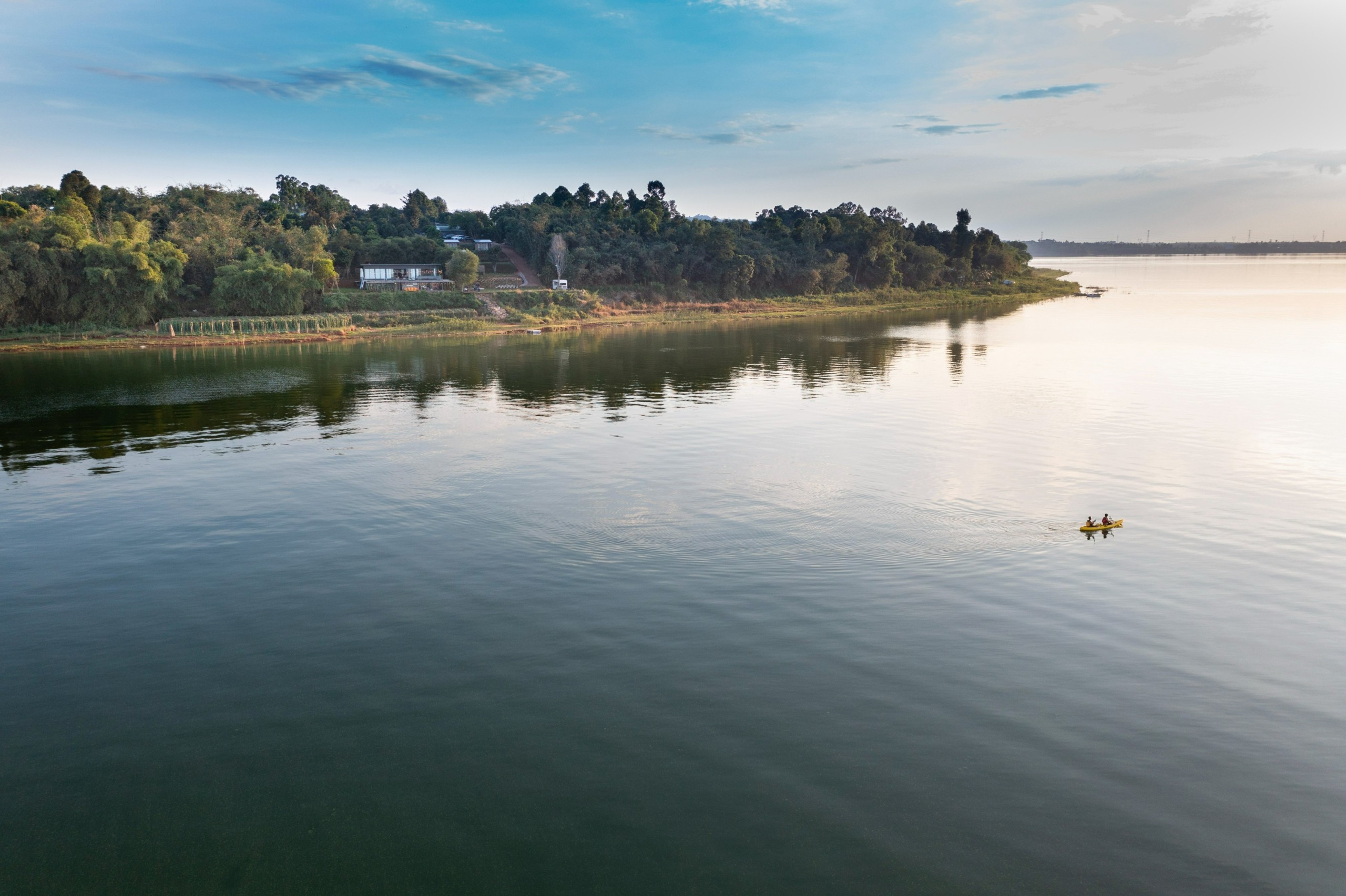Completely open space: In the middle of the lake, there are no buildings or artificial sounds, just sky and water.